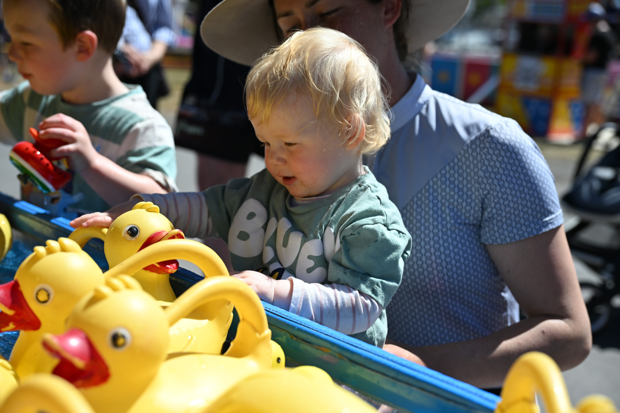 Parents watched as their little ones took a turn on the tea cup ride or fished for ducks to win a prize.